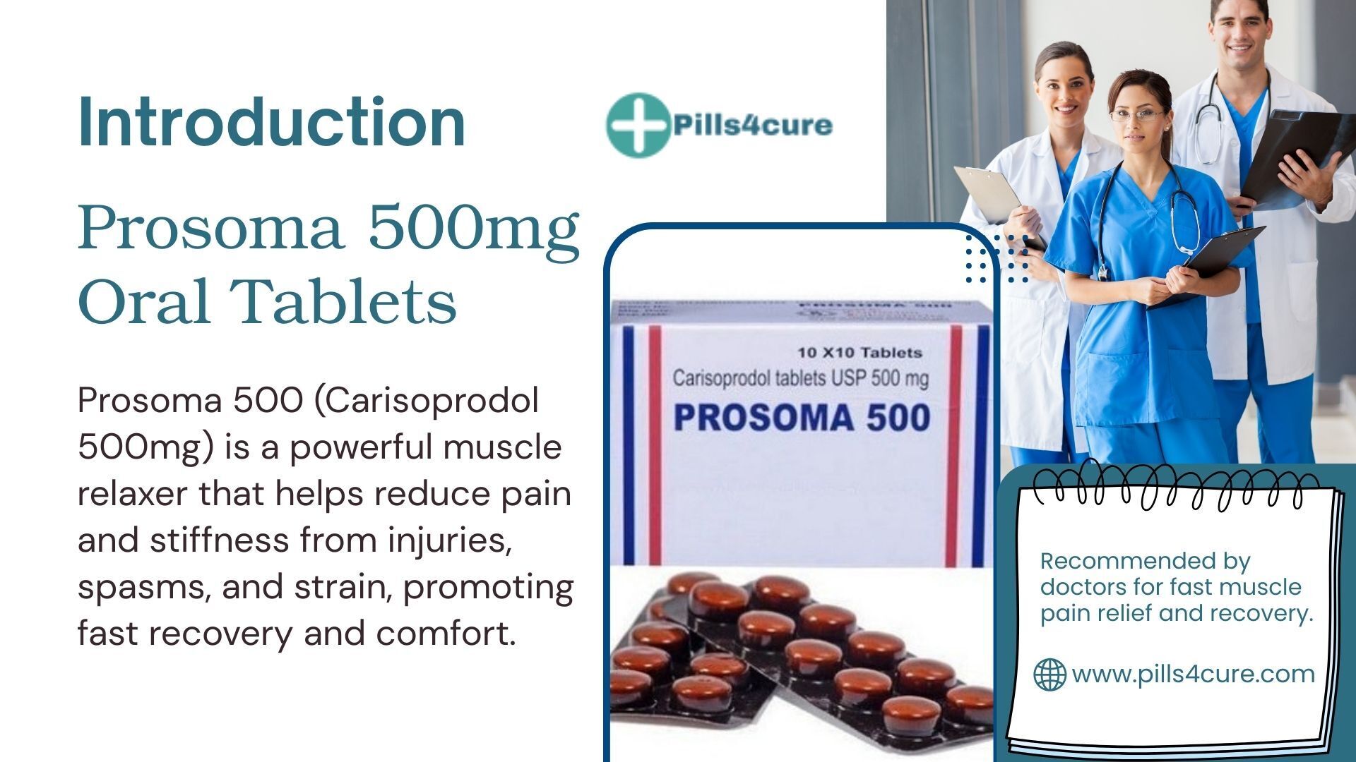 Buy Prosoma Carisoprodol 500 mg is commonly chosen by adults experiencing painful muscle cramps due to sudden strain, sports injuries, poor posture, or recovery after minor accidents. Office workers with back or neck spasms, athletes dealing with overworked muscles, and individuals recovering from physical labor often find short-term relief with Prosoma 500mg Oral tablet. It is not suitable for chronic pain conditions that require long-term management and should always be used as part of a short recovery plan.