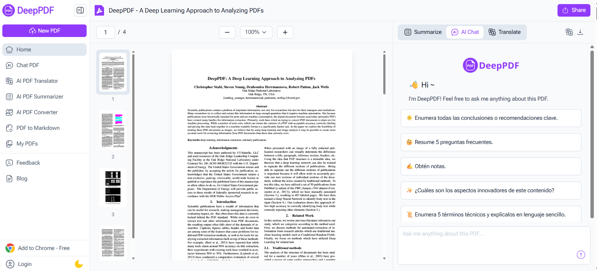 - Anyone who wants to understand PDFs more efficiently The browser extension is a standout feature, especially for users relying on Google Scholar and arXiv. If your daily workflow revolves around reading or researching PDFs, DeepPDF AI is absolutely worth trying.