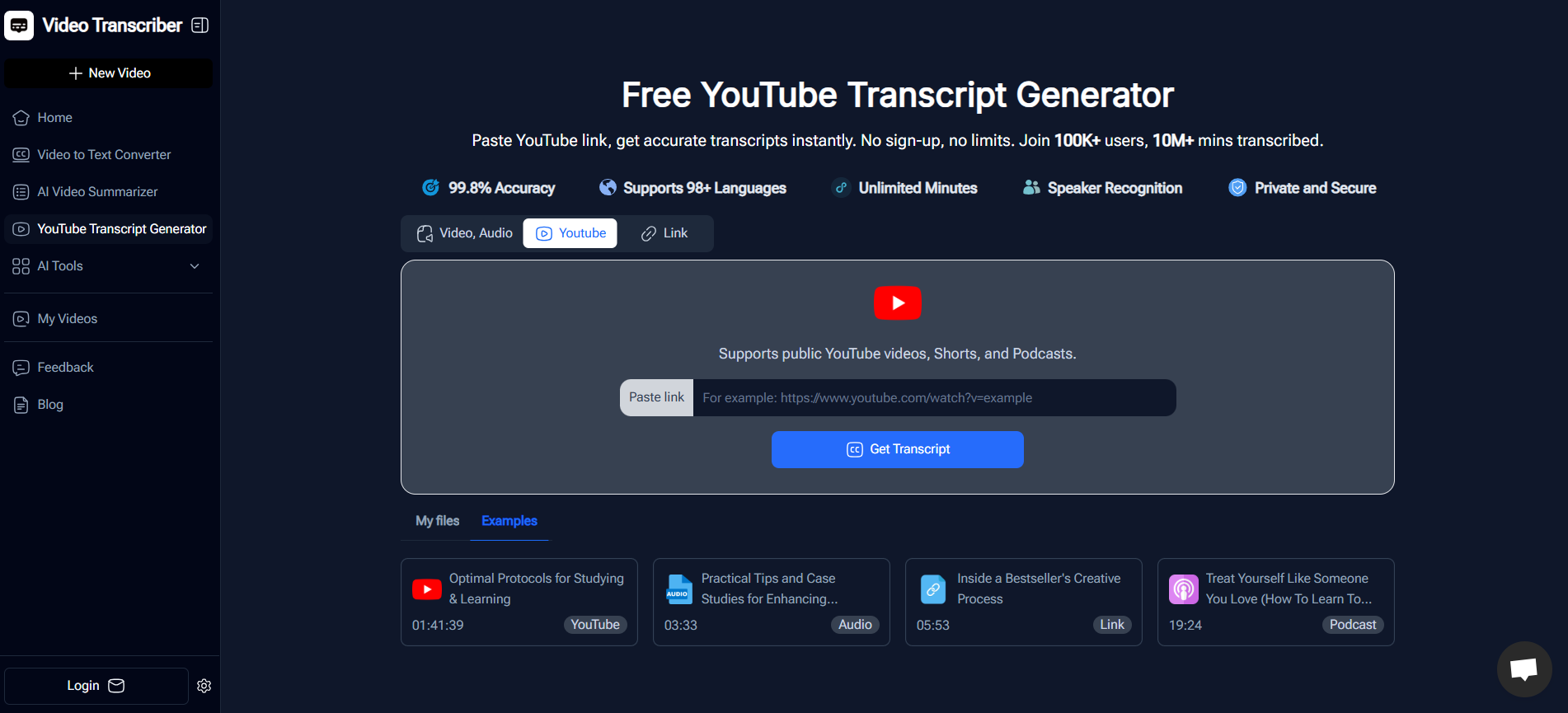 With the YouTube transcript generator, I can:
