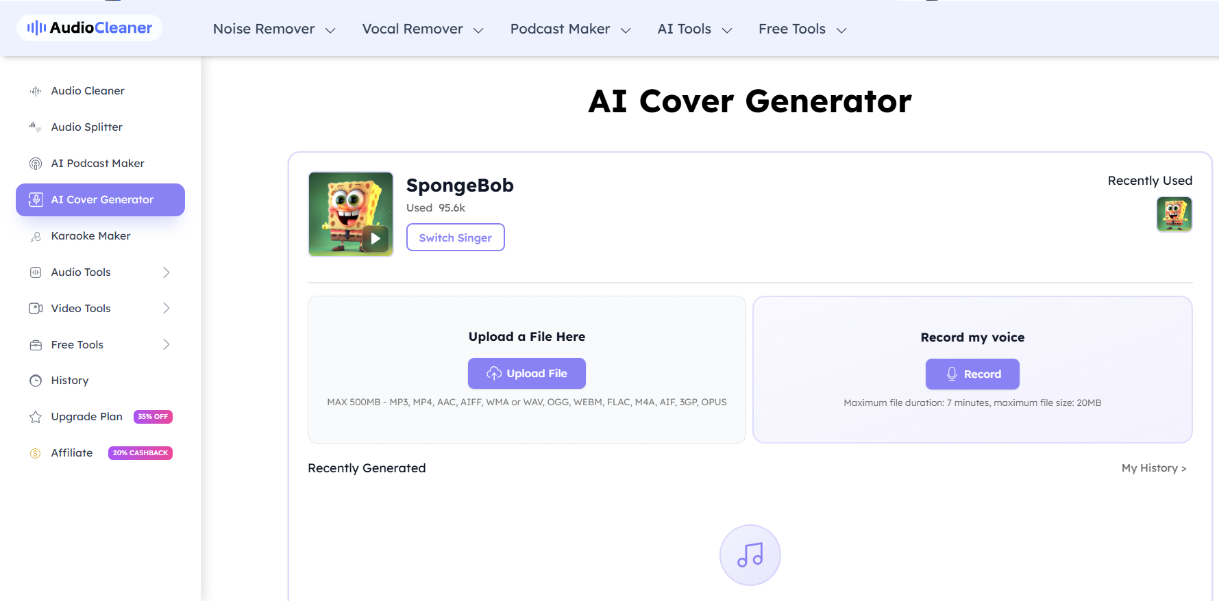 I mainly use these tools for fun—messing around with my friends’ voices, creating meme-worthy tracks, or just seeing what a pop song would sound like if sung by a cartoon character. So when I say I need a tool that’s fast and frictionless, I mean it. I recently stumbled upon AudioCleaner AI’s AI cover generator, and after spending a few days with it, I wanted to share my experience.