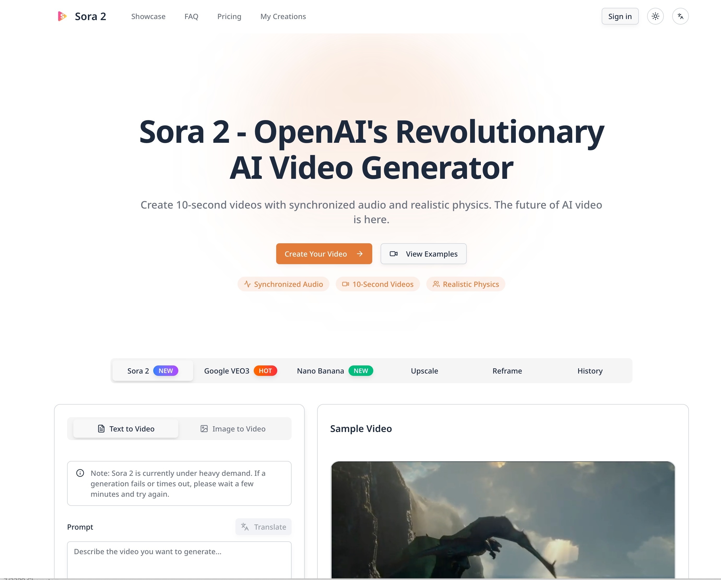 If you're looking for a platform that offers more than just basic video generation, Sora2AI.co is the perfect choice. With powerful tools like WAN Animate, Nano Banana, Upscale, and Reframe, along with synchronized audio and realistic physics, it’s the all-in-one solution for creating high-quality videos quickly and efficiently. Whether you’re a content creator, marketer, or business, Sora 2 has everything you need to take your videos to the next level.