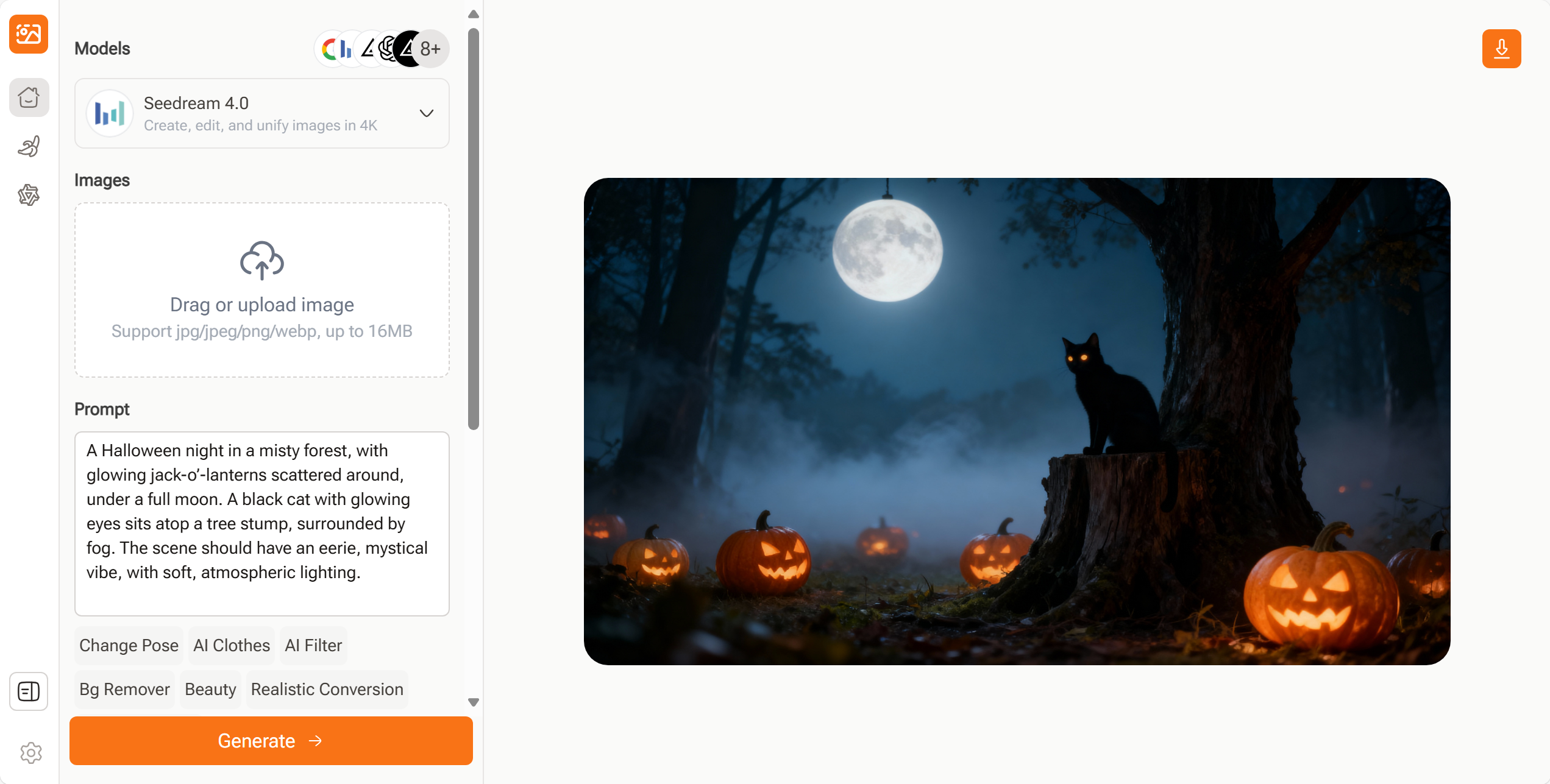 Be Specific: The more detail you provide, the better the output. If you want a spooky Halloween scene, don’t just say “Halloween” – describe the elements you want (pumpkins, fog, creepy lighting, etc.).
