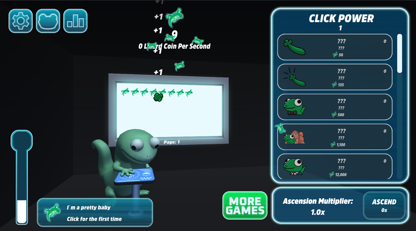 You start with a single click per tap or click, then use earned points to buy upgrades that boost click power and eventually generate automatic earnings. As you reach milestones, you unlock a variety of cute and quirky lizards, each with its own visual character.