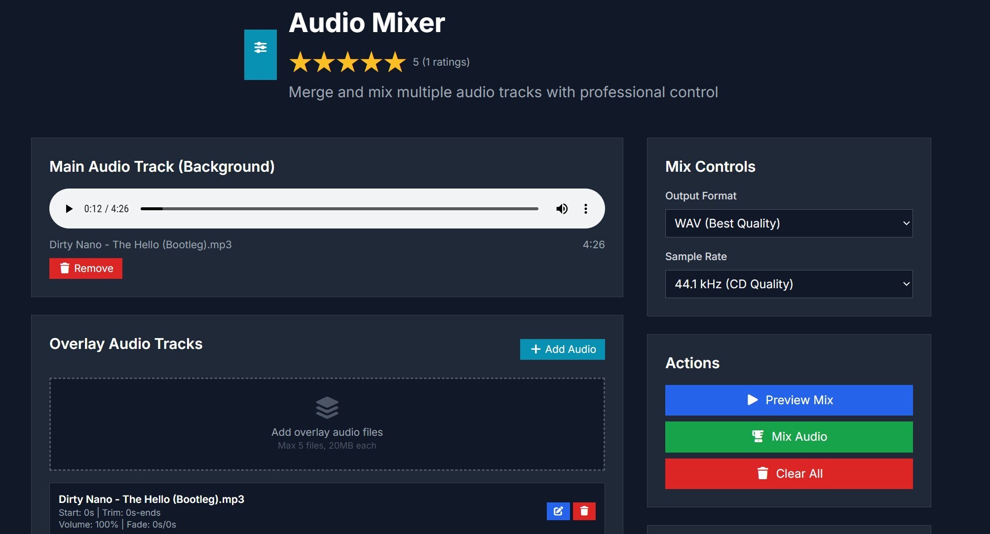 After working with it for several sessions, I feel comfortable recommending Audio Mixer for content creators, podcasters, educators or anyone needing simple—but reliable—audio mixing without a steep learning curve. It won’t replace a full studio setup, but for many day-to-day tasks it hits the sweet spot of power plus ease of use. If you’ve been looking for a lightweight, browser-based way to mix audio tracks cleanly, this tool is worth checking out.