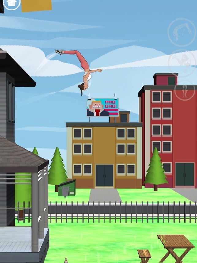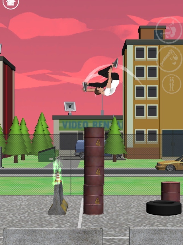 Features worth noting include the varied environments and trick types. The levels evolve: early ones are straightforward jumps across rooftops, while later stages introduce tighter gaps, moving obstacles, and higher stakes in terms of precision and creativity. I enjoyed unlocking different characters or outfits — little customisations that feel rewarding even though they don’t affect gameplay in a major way. The visuals are clean and stylised, emphasising bold shapes and clear motion so you always understand what’s happening.